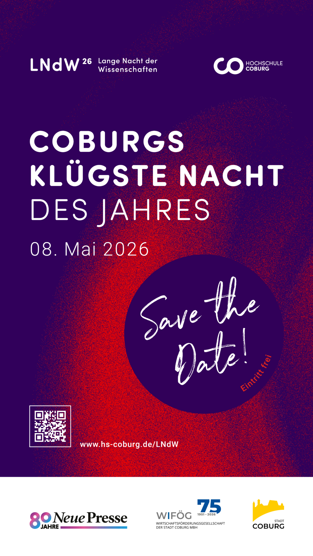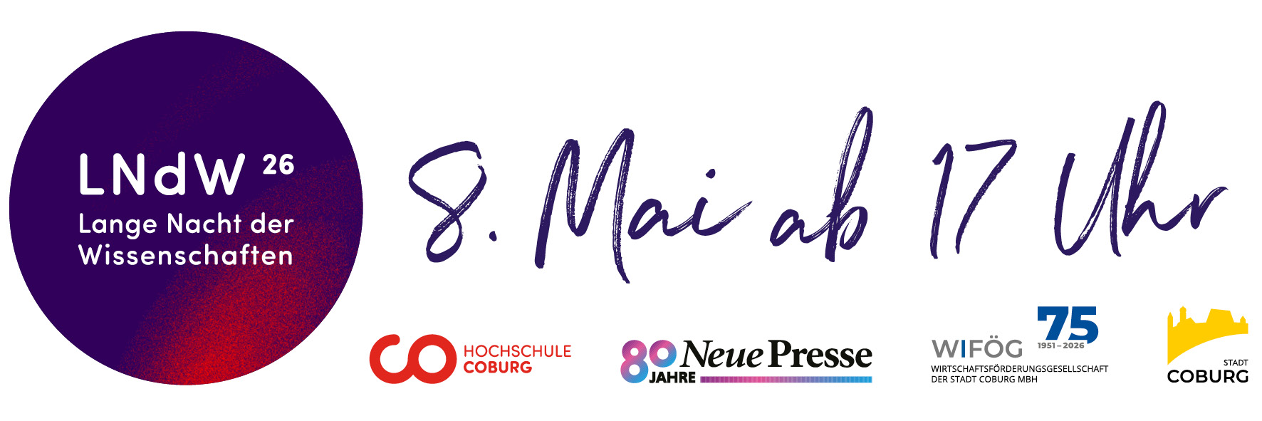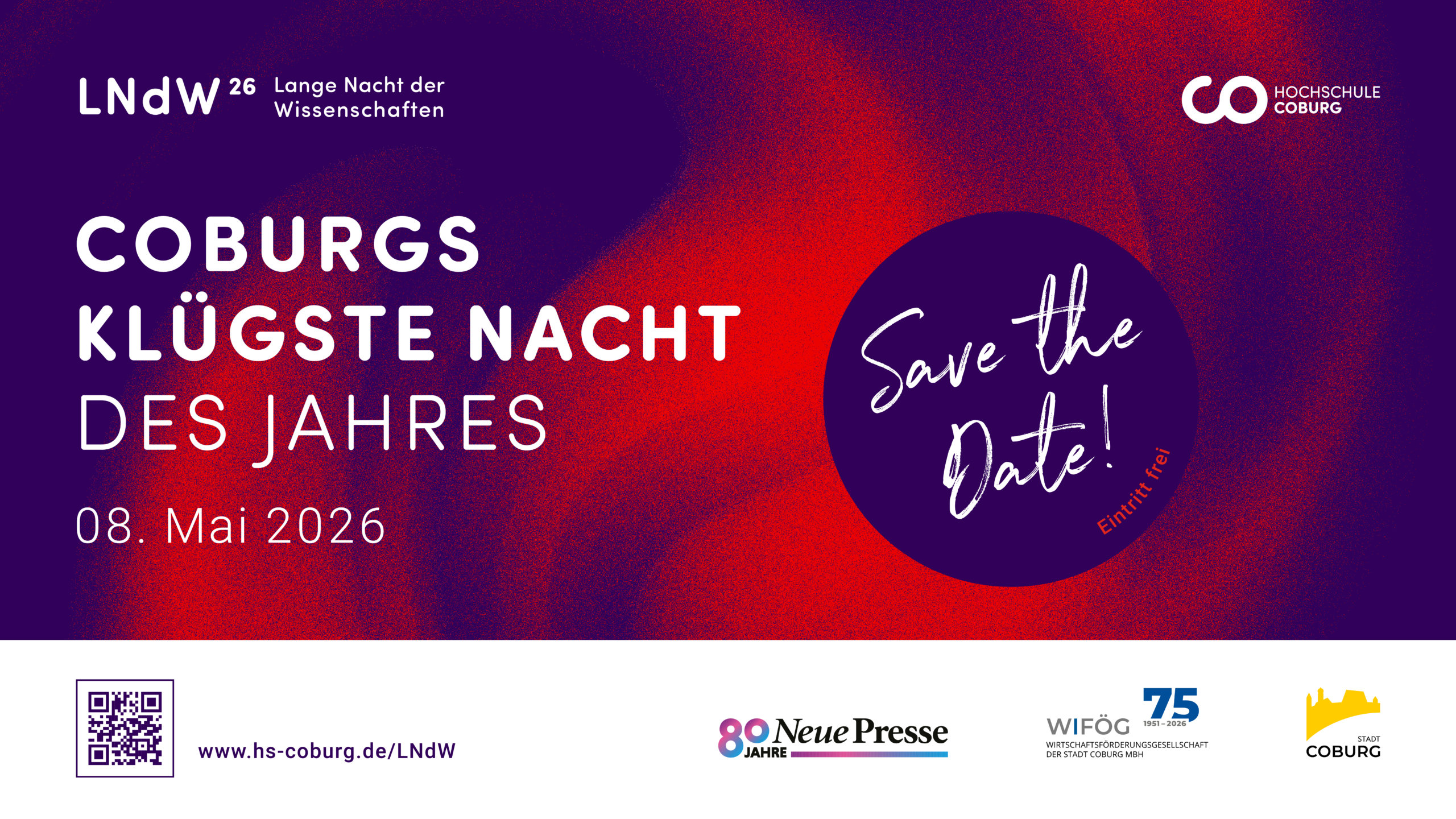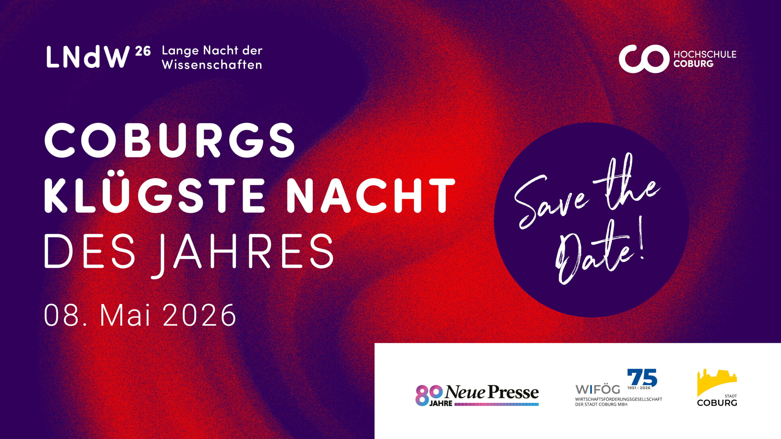 Veranstalter ist die Hochschule Coburg. Die Lange Nacht der Wissenschaften der Hochschule wird unterstützt von Stadt Coburg, Neue Presse Coburg, WIFÖG Coburg sowie der Sparkasse Coburg, Heinz Glas, Kapp Niles, HZG Group und weiteren Partnerinnen und Partnern aus der Wirtschaft.
